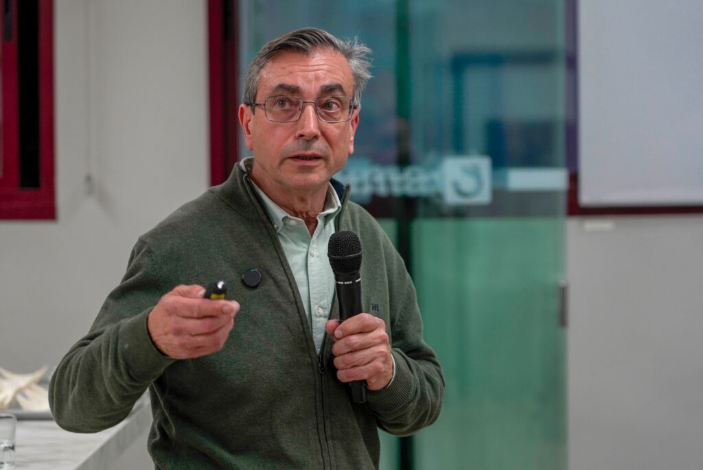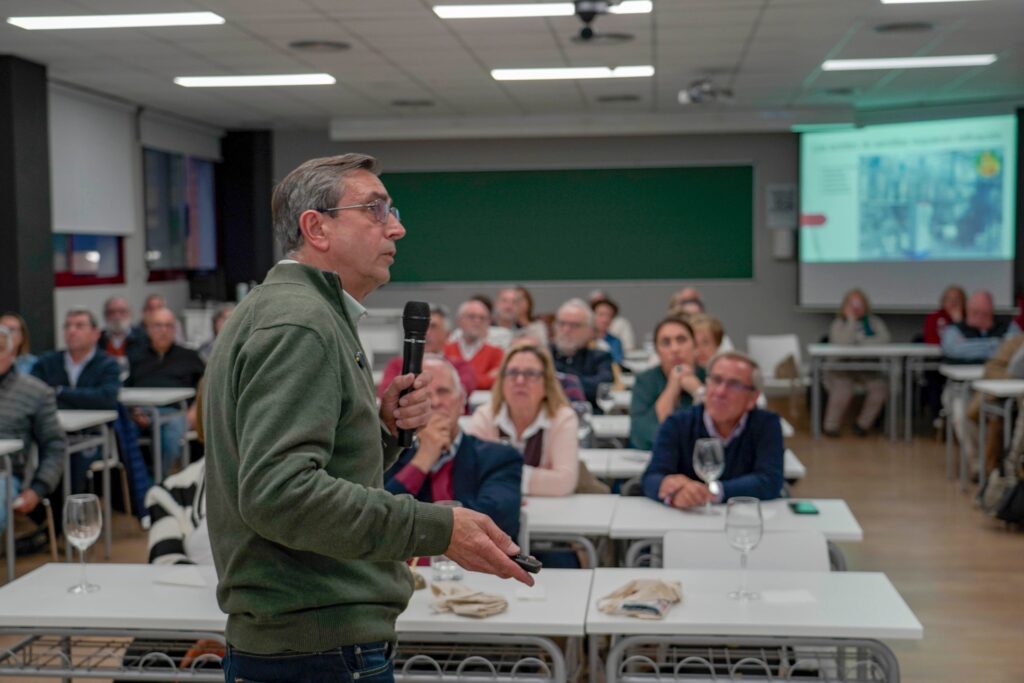 Marcos Chacón, moderador de la tertulia, presentó el tema y a los invitados Diego Rivas, jefe de Industria Agroalimentaria de la Delegación de Agricultura de Málaga, directivo de La Carta Malacitana y gran experto del aceite y del olivo y Daniel García Peinado, conocido como chef del AOVE, y uno de los profesionales que más defiende su uso en la cocina, como ya demostró en su periodo de cocinero de la Selección Española de Fútbol y ahora lo hace en su restaurante Olivar 15 de Fuengirola.
