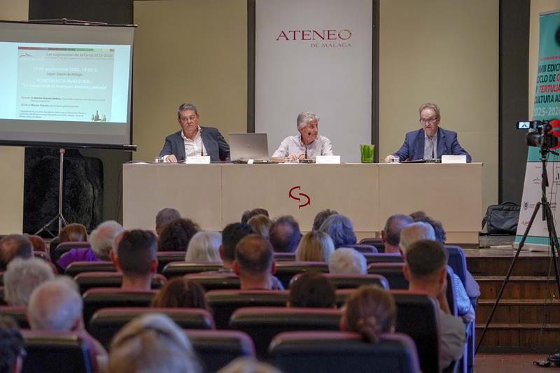 El pasado día 30 de septiembre, se inauguró el curso de conferencias y tertulias, que bajo el título «Las sugerencias de la Carta Malacitana», la asociación ha programado para este año. El acto se celebró en el Ateneo de Málaga, y tuvo como ponente al profesor Antonio Guzmán Valdivia, que disertó sobre «La comarca de la Axarquía: historia y paisaje». Como cada curso, la Carta elige una comarca de la provincia, sobre la que distintos especialistas dan a conocer aspectos de ella como el paisaje, la gastronomía, las fiestas populares o las rutas para acercarse a ella. Este curso se ha elegido el territorio oriental malagueño.