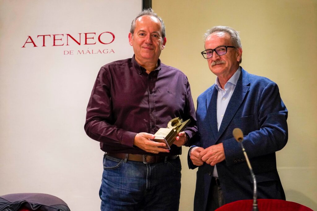 Terminada la excelente conferencia, el presidente de La Carta Malacitana, Antonio Carrillo, hizo entrega a Ángel Caracuel de una escultura de Pepe Pereiro, como recuerdo de su paso por este foro. Tras ello los asistentes pudieron degustar dos tipos de queso: el curado de leche cruda de cabra Flor Bermeja de Casabermeja y el azul de Cabraline de Antequera, maridados con un tinto Gadea, de la variedad syrah, de Bodegas Carpe Diem, de la D.O. Sierras de Málaga.