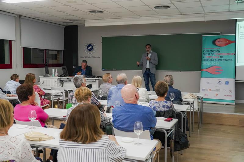 El martes 28 de octubre correspondió abordar las rutas y paisajes así como las fiestas que ofrecen los 31 pueblos que componen esta camarca del oriente malagueño. En el aula del Gastrocampus de la Facultad de Turismo de la UMA, el periodista y miembro de la asociación, Javier Almellones, fue el encargado de dar a conocer las bondades de parajes y rutas así como de los distintos festejos axárquicos, siempre cargados de tradición y de historia.