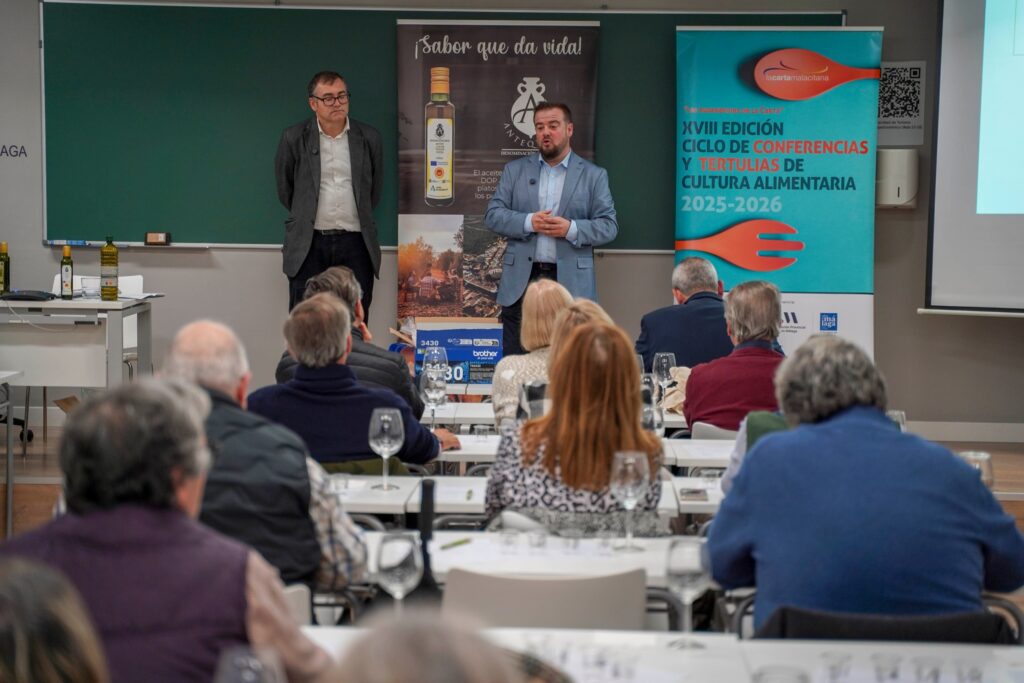 La sala de catas del Gastrocampus de la Facultad de Turismo de la UMA, acogió el pasado día 3 de febrero la tertulia sobre la denominación de origen del Aceite de Antequera. Moderada por Laura Escobar, asistieron como invitados Benito Avilés presidente del consejo regulador y Esteban Carneros, responsable de relaciones externas de la denominación.
