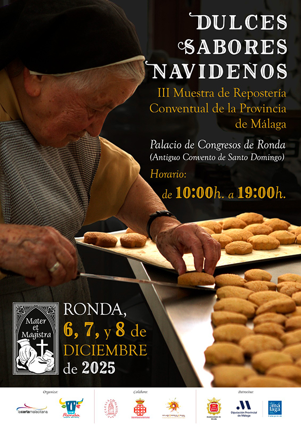 El Palacio de Congresos de Ronda acogerá los días 6, 7 y 8 de diciembre la III Muestra de Repostería Conventual de la Provincia de Málaga, un encuentro único que reúne los dulces tradicionales elaborados artesanalmente en conventos y monasterios de clausura. En esta edición participarán diez comunidades religiosas, nueve de la provincia de Málaga y un monasterio invitado de Osuna (Sevilla), convirtiendo el evento en la mayor cita de repostería conventual de Andalucía.