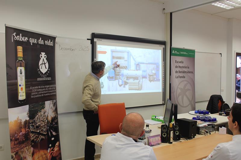 El contenido se ha expuesto en dos formatos. Uno repartido en dos jornadas, iniciándose con la presentación de las jornadas por parte del presidente de La Carta Malacitana, Antonio Carrillo, en la que da a conocer la trayectoria de la asociación y sus principales objetivos basados en la dieta mediterránea, los productos de proximidad y la cultura y tradición culinaria de Málaga. Seguidamente, a los alumnos se les ofrece una exposición del concepto de gastronomía y de los platos más significativos de Málaga, a cargo del periodista y miembro de La Carta, Marcos Chacón. Tras él, Javier Escalona, director comercial de Caprisur, ha ofrecido una panorámica del chivo y la cabra malagueños, y de los productos que se elaboran con ellos. Anabel Rojas, secretaria de la D.O. Miel de Málaga, mostró a los alumnos el abanico de mieles que las abejas elaboran en los campos malagueños con una cata de algunas de ellas, concluyendo este primer día con una cata de aceites de la provincia junto con una exposición de su historia, por parte de Diego Rivas, también miembro de La Carta Malacitana, directivo de la delegación de Agricultura de la Junta de Andalucía en Málaga, y uno de los mayores expertos en este producto.