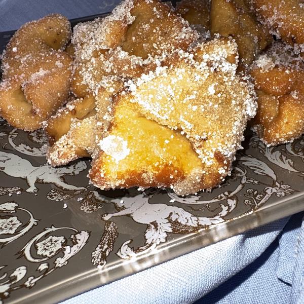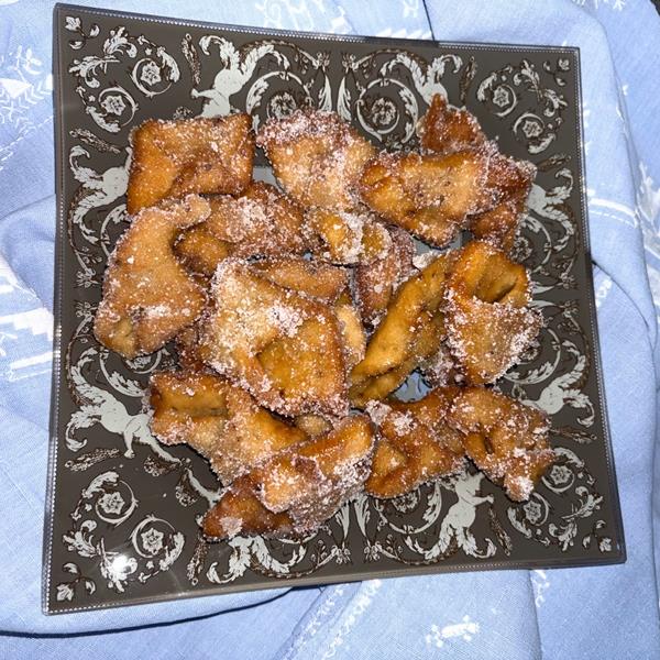 Servir los pestiños en una fuente y a continuación espolvorear con azúcar.