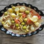 La noche anterior poner en un recipiente con un puñado de sal, las habas secas, los garbanzos en remojo.