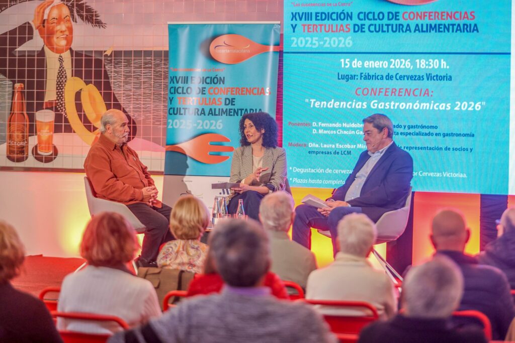 Acaba de iniciarse el nuevo año y la Carta Malacitana dedica el jueves 15 de enero, su primera actividad dentro del ciclo programado de conferencias a las «Tendencias gastronómicas para 2026». Con la presentación y moderación de Laura Escobar, han sido invitados el abogado y gastrónomo Fernando Huidobro, y el periodista gastronómico Marcos Chacón. El escenario ha sido la fábrica de cervezas Victoria.
